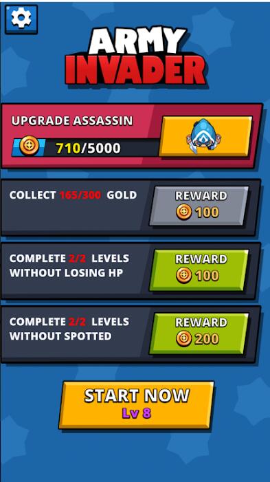军队入侵者是一款非常好玩又有意思的趣味休闲动作战斗闯关冒险游戏,在游戏中,玩家将要去进行一场刺激的竞技对战,游戏里面玩家需要去使用好自己的武器来向你的敌人发起进攻,击败你的敌人赢得胜利。游戏内容丰富精彩,趣味性十足,欢迎广大玩家进行下载军队入侵者。