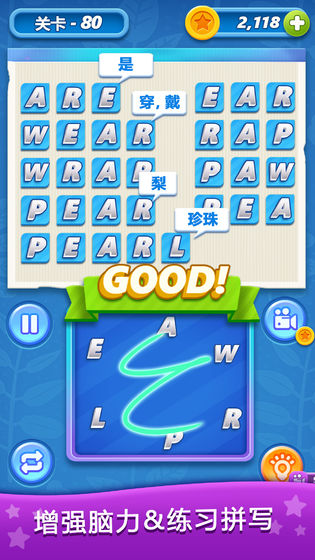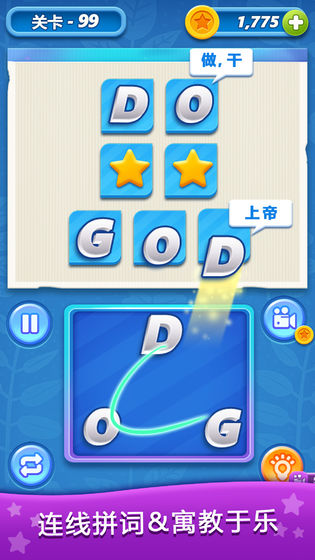 2、循序渐进的难度前期单词很少容易连线。