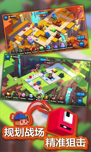 1. 呆萌画风:游戏以其独特的呆萌画风吸引了大量玩家。游戏中的塔防单位和敌人都以方块的形式呈现,色彩鲜艳,形象可爱,给玩家带来了不一样的视觉体验。