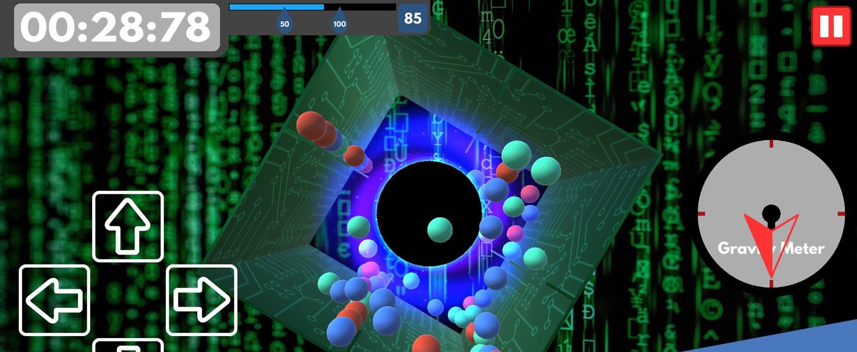 2.游戏开始后,盒子会同时开始向不同方向旋转,盒子底部的黑洞会吞下碰到它的球;