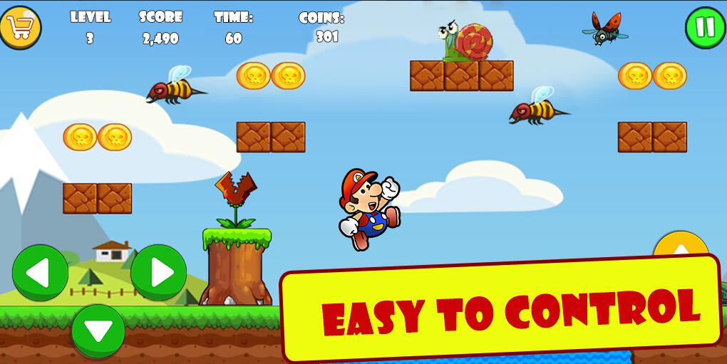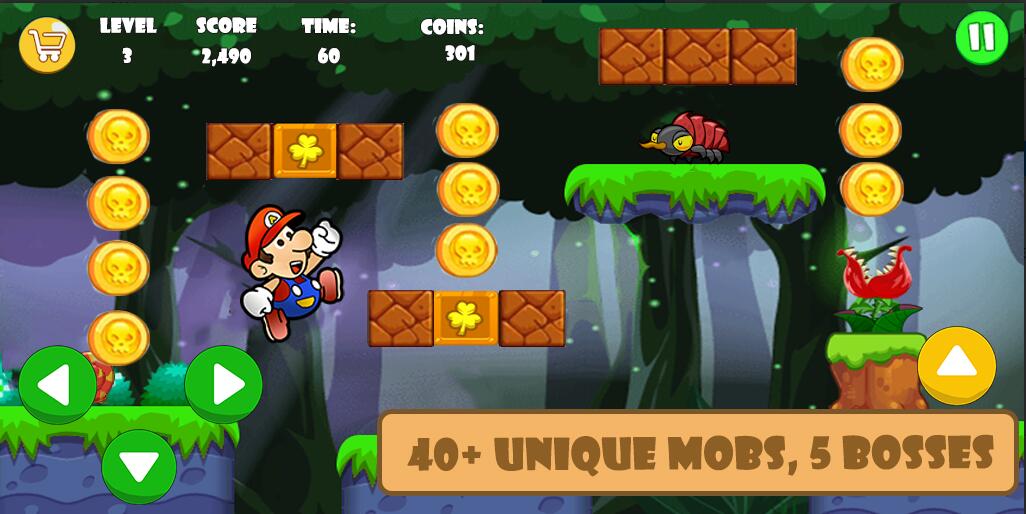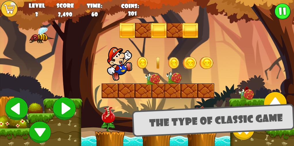 闯关冒险游戏采用横屏游戏,大量敌人会来阻碍你的前进,玩家一定要注意躲避他们,他们会杀死敌人。你可以。有很多金币可以收集。道具帮助玩家变得更好。玩起来非常刺激有趣。