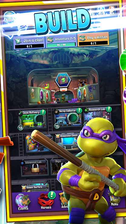 忍者神龟疯狂突变是一款自由度极高的动漫系列动作冒险游戏,以忍者神龟为主角,玩家可以通过收集卡牌角色和培养它们来提升实力,战胜敌人。游戏具有丰富的战场关卡设定,挑战性十足,而且有3D游戏设计,动作技能释放逼真热血。玩家还可以解锁和升级新房间,赚取资源,控制乌龟巢穴。游戏特色包括巨大的地图场景挑战、各种强大的技能释放、高自由度的动作冒险和多样化的玩法和战斗。