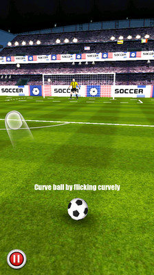 3、在屏幕上划出曲线手势,踢出曲线球。