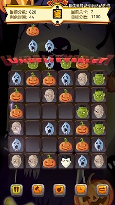 万圣夜消消乐免费版下载这是一款万圣节主题的消除闯关游戏,游戏继承了非常经典的相通图案消除玩法,玩家需要在指定的时间内,将万圣南瓜头通通消除,消除的南瓜头越多,那么最后的得分也会越高,游戏过程中还会时不时掉落超强道具,玩家一定要把握好机会得到它们,这些道具能够帮助你更快的进行闯关。