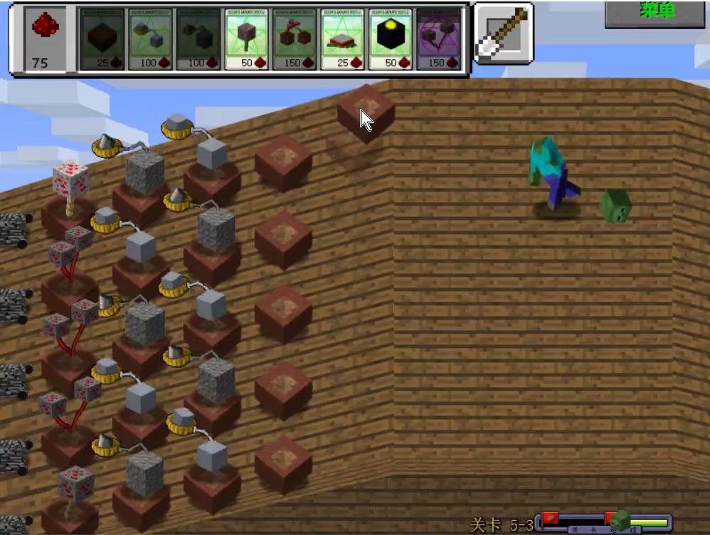 2、玩家将在我的世界的方块世界中,利用经典植物如豌豆射手、坚果墙等,抵挡逐步逼近的僵尸敌人;