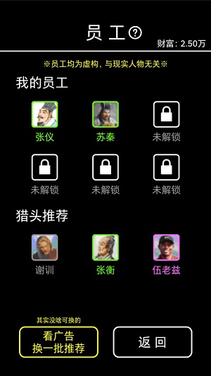 你有不同的员工,每个员工有不同的技能。你需要灵活运用不同员工的技能来摆摊,获得充分的利润。这里有各种不同的商业策略供你体验,也有许多不同的技能供你混合和搭配。管好它就看你了。你也可以挂掉你的生意,你的生意利润不会减少,解放你的双手。