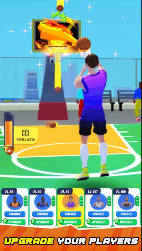 2、独特的升级机制:玩家可以通过对决不断提升自己的篮球技能,给玩家带来更多惊喜体验,增强玩家的竞技体验。
