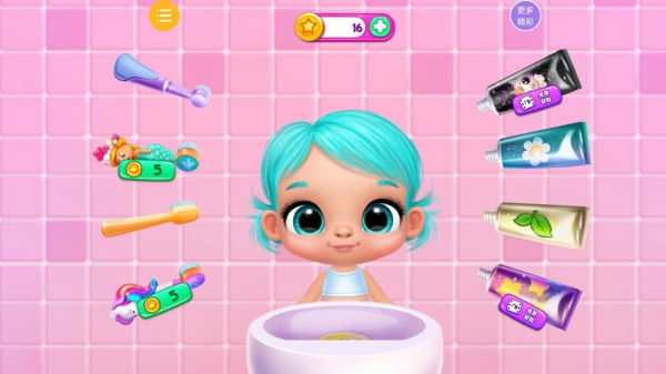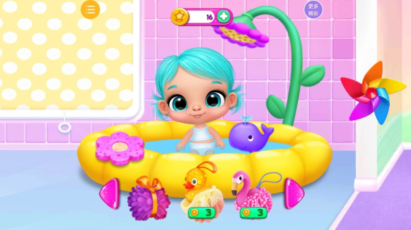 游戏提供了多种的场景,客厅以及花园甚至是玩具屋都能进行体验,需要借助道具来满足宝宝的要求。