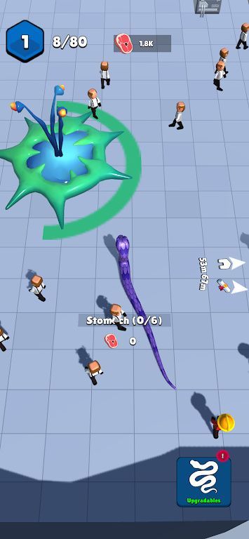 1、吞噬各种食物和其他小动物,获得营养和能量,壮大自己。