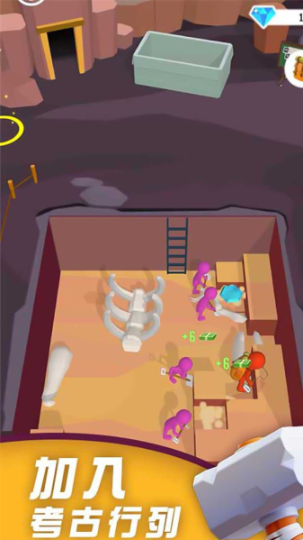 4、还可以通过挖掘的方式收集恐龙骨架,有一定的概率可以挖掘到藏有金币的宝箱哦!