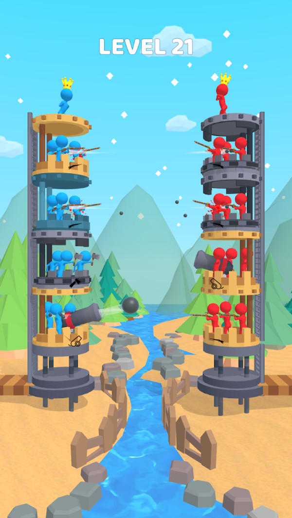 火柴人塔防让我们为游戏建造更多的塔防。塔防有很多种。武器可以选择和升级。如果你打败了对手的火柴防御塔,你就是最强的火柴防御塔。