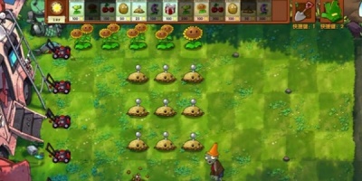 2、使用高于向日葵高度的坚果保护一路,其他路可以都种上“豌豆土豆雷”和“豌豆坚果墙”。