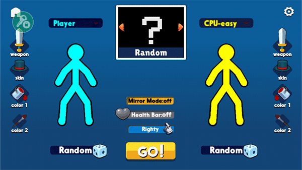 2.能够轻松的选择出战的火柴人装备,为玩家提供了不同的操控方式。