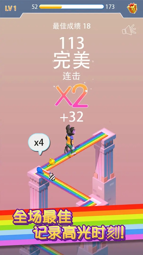 2、连击奖励:连续成功跳跃可获得加分,并触发炫酷的彩虹特效;