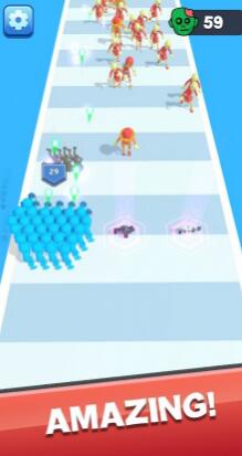 3. 躲避敌人,避开路上的各种障碍物,尽量增加队伍数量。