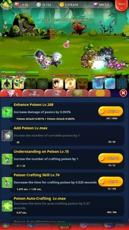 4.收集不同颜色的毒液,并通过合并它们来升级生命值和攻击力,从而更好地对抗强敌。