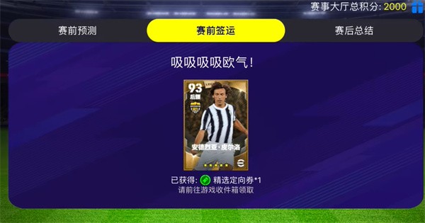 3、最后,有一定的概率在赛事大厅的赛前签到获得。