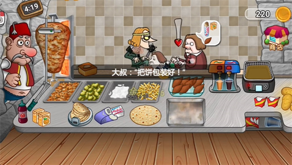 2. 主要负责制作一种名为沙威玛的中东美食,用赚来的钱升级生产设备;