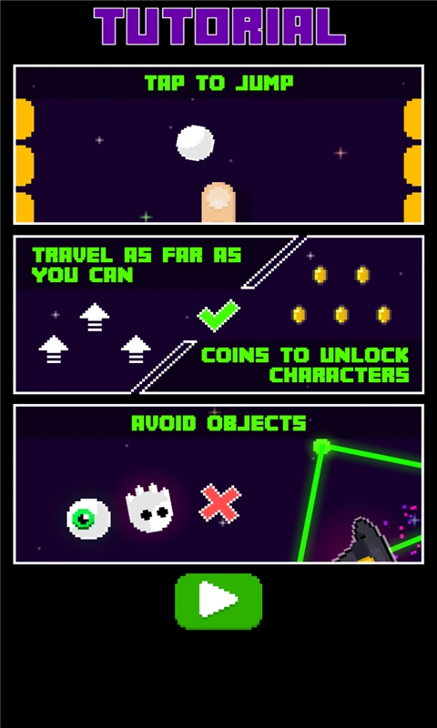 俯冲空间是一款刺激的像素风格飞行类手机游戏,在宇宙中操控飞船躲避陨石并收集金币解锁更多人物,挑战随着游戏深入而增加的难度,考验玩家的眼力与反应能力。绚丽的画面和流畅的操作,能够穿越充满陨石碎片的宇宙流行带,收集钻石与金币,并解锁各种角色。