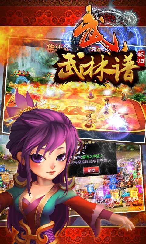 《武林谱》是一款布阵回合自动战斗的手机角色扮演游戏,取材于著名的武侠小说,用游戏塑造了一个亦真亦幻的武侠世界。游戏集合了伙伴养成、装备强化、帮派对抗、竞技场等经典玩法,并且开创了一些全新的玩法,果园种植,护镖劫镖,武魂猎取……丰富深入的角色培养体系以及精彩丰富的线上活动,给你非凡的游戏乐趣 。
