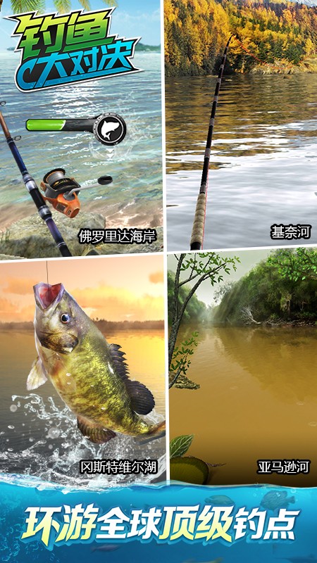 《钓鱼大对决》是一款带有RPG元素的运动钓鱼模拟游戏,专为钓鱼冒险,动作游戏,模拟游戏,比赛和户外活动而设计。旅行到世界上最美丽的国家,中国、美国、澳大利亚等。访问各地的真实水域,从淡水的湖泊、河流到咸水的大海和大洋,乃至神秘的峡湾。您可以捕捉各种鱼,如地图鱼,大西洋蓝鳍金枪鱼,乌鳍石斑鱼,绿青鳕鱼,锦鲤,电鳗甚至虎鲨!在这里你可体会到世界级的休闲运动,并参加各种钓鱼比赛,与你的朋友竞争,探索。同时捕捉最大的鱼,成为终极鱼冠军。