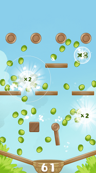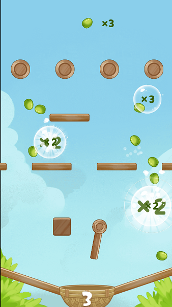 大丰收小游戏下载这是一款由微伞工作室制作的休闲游戏。这款游戏的玩法很简单只需要点击屏幕下方的水果篮即可,当水果下落并触碰到屏幕中的加倍按钮时,就会加倍分裂,一个、是个、百个无限分裂,游戏虽然不难,不过需要一点小运气,毕竟没有触碰到加倍键的话,可没有办法分裂水果哦。