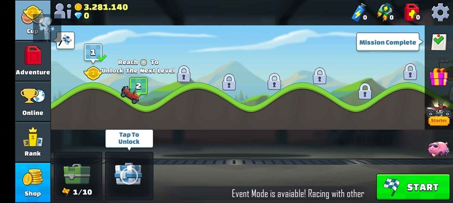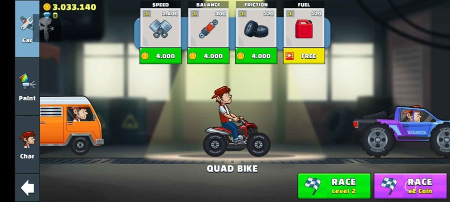 登山越野竞速内置菜单下载一起来完成紧张刺激的登山挑战吧。玩家在游戏中将成为登山手杰克,你需要操控自己的越野车不断向前,躲避障碍物的同时收集金币,超越其他的对手用最短的时间抵达终点,并且在你不断行驶的过程中会随机出现不同的道具,有一些能够帮助你加快速度但是有一些会让你失去行动能力,所以在使用的时候一定要分清楚。