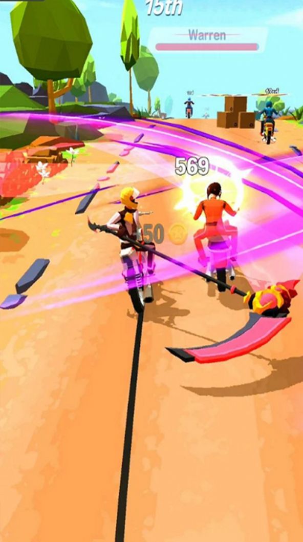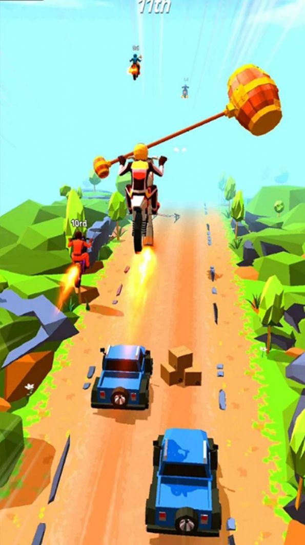 2、将与你的摩托车在路上进行各种战斗,并使用各种美丽夸张的武器来消灭你的对手。