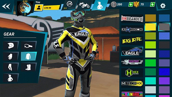 1、在本站下载安装好疯狂特技摩托车3最新版本后,打开进入大厅页面,左侧的“store”是商店,上方分别是摩托车型号和车手,左上角是个人中心,进入可以查看详情和战绩。