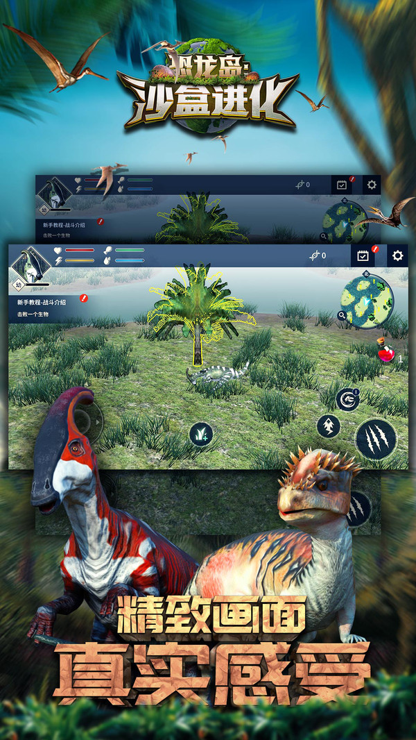 1、游戏是首款沙盒真实模拟恐龙时代,每一只都是用心做出来;