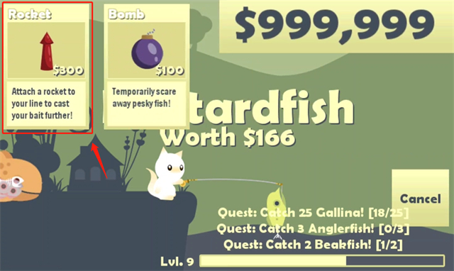 各种鱼竿为你的钓鱼能力提供不同的奖励,鱼竿的等级越高,捕获稀有鱼的机会就越大。