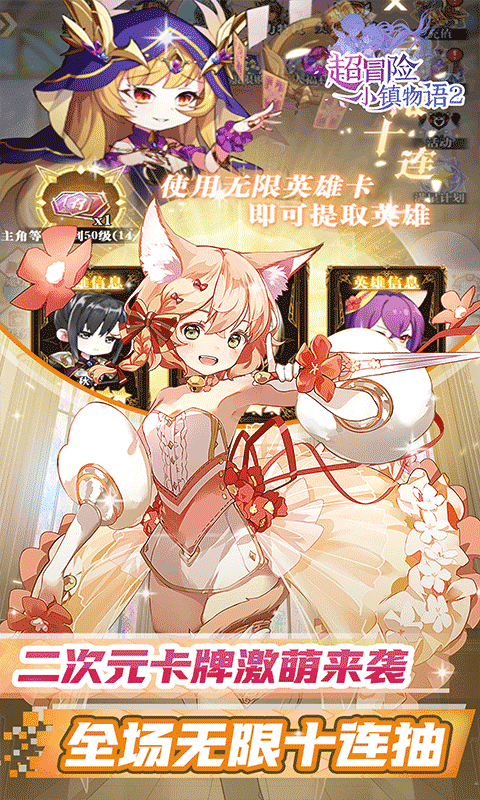 超冒险小镇物语2是一款以收集二次元萌娘为主题的卡牌策略手游,登陆游戏即可享受0.05折充值折扣福利,上线就送美女包围礼盒,管理元特权后台,所有充值仅需0.05折,内置无限十连抽卡系统,UR萌娘任你挑,海量福利资源等你来领,花最少的费用获得最极致的游戏体验感。