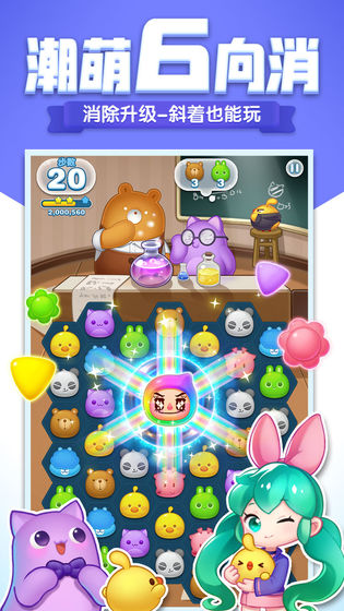 2、同时延续了天天爱消除中被用户所熟知的系列形象,以更加潮流百变的形象,陪伴每位玩家一起冒险。