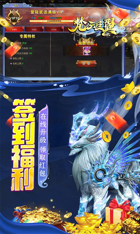 梵天巨翼的玩法非常简单,你可以在不遵循主线剧情的情况下玩游戏,通过与怪物战斗来升级,享受简单的游戏体验。而且游戏中还有大量的福利礼品,无论是服装、坐骑、武器装备,都是直接赠送的。让玩家只需点击一下就能变得超级强大。感兴趣的玩家可以下载并体验它。