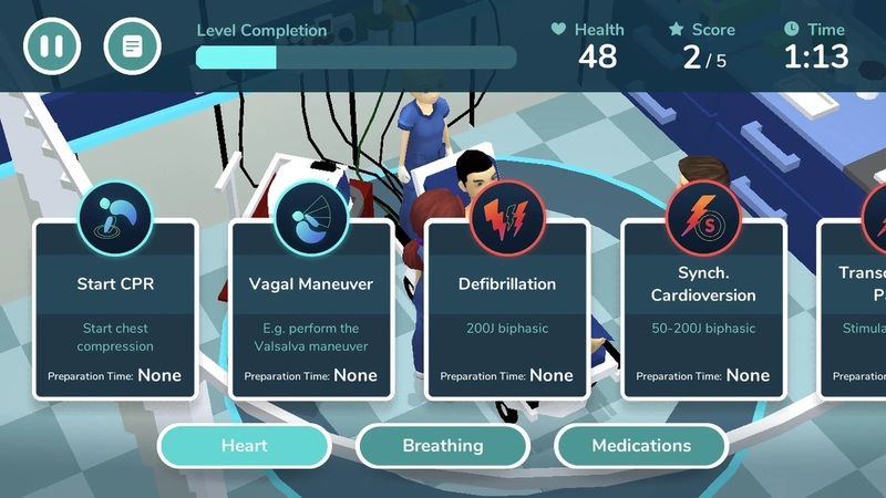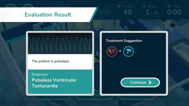 游戏包括7个层面,包括心脏骤停,心动过缓,心动过速,模拟巨结肠。第一级(心跳骤停)可以自由发挥。如果你喜欢它,在应用程序购买将解锁六个额外的水平。
