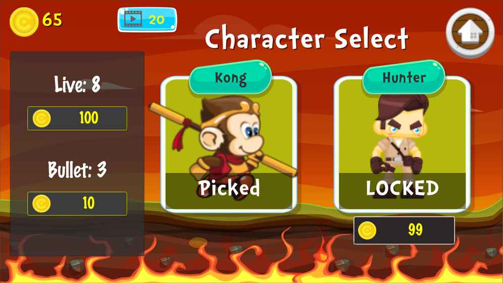 小猴子遗失了黄金,迫切需要您帮助他跑跑跳跳穿过神奇的王国,寻回豆子。千万要小心!这里充满了各种凶猛的怪物,它们会想尽一切办法阻止小猴子。收集到的豆子能帮助小猴子增长健康值。
