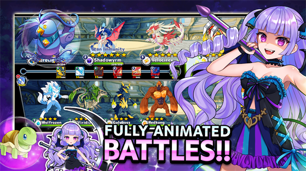 3.战略回合制: 战斗采用经典回合制模式,强调战略,玩家需要匹配怪物,合理使用技能才能获胜。