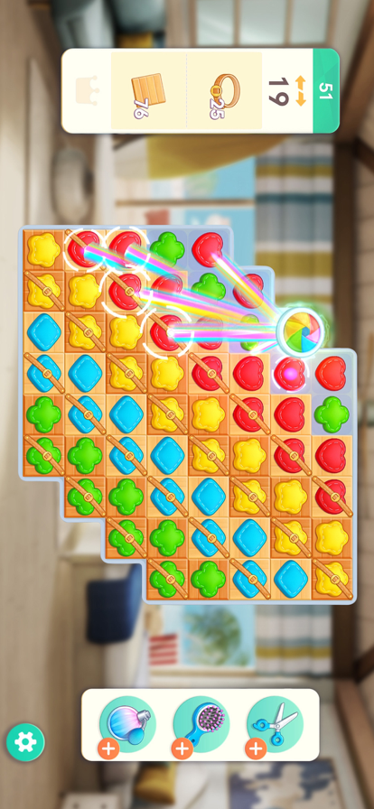 超过3000个消除级别和超过200种障碍元素碰撞,创造一个新鲜和具有挑战性的乐趣!通过一个简单易用的消除游戏,你可以解锁大量的美容物品,而游戏中的消除道具也都是时尚的buff堆叠满了!轻轻动动指尖,幸福即将爆发!
