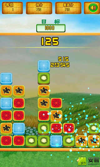 2、点击相同的水果图标就会消失并获得相应分数。