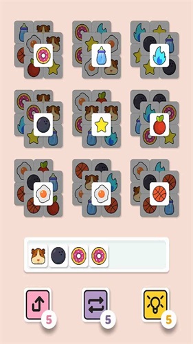 使用了非常多可爱的元素,不管是篮球或者是荷包蛋,甚至是小星星,甜甜圈,都能进行消除,在消除过程中要仔细进行观察,千万不要让卡槽堆积过多的元素,一旦元素堆积过多,会容易造成游戏失败。