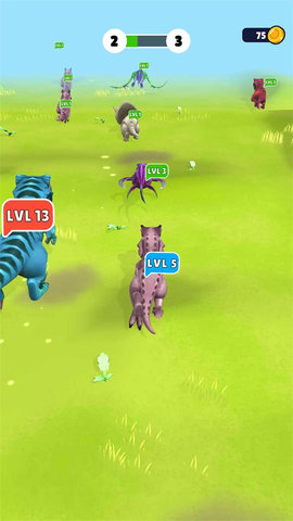 玩家需要控制他们的恐龙角色,并快速合成不同级别的敌人。
