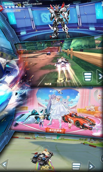 游戏采用Unity3D引擎,操作流畅度和画面精美程度远超期待。特供多种操作模式。重力感应系统、自由触屏系统、两种虚拟按键模式任玩家选择。完美呈现卡漂、拉漂双喷等经典飞车玩儿法,高度自由的操作模式带来极度刺激的游戏体验。