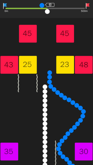 滑动屏幕,蛇皮走位,躲避障碍,冲向终点!