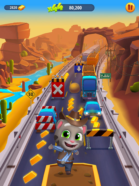 《汤姆猫跑酷》是一款带有收集养成元素的跑酷类游戏,你的任务是夺回你的金子,并狠狠地踢他们的屁股,同时你还能不断发现新场景,体验不同的跑酷风格,真是棒极了!