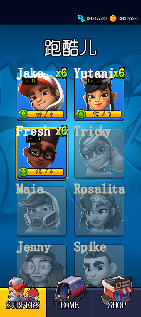 3、获得新角色之后,回到游戏大厅,点开左下角的surfers进入;