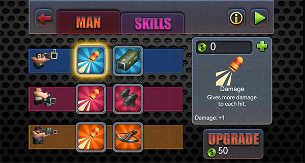 5、在得到游戏币之后可以升级道具,使僵尸或者人类武器威力更强。