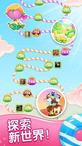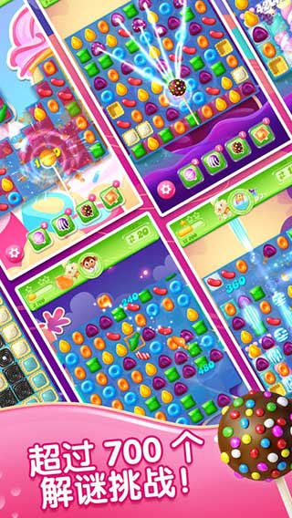 糖果果冻传奇官方版是由著名游戏开发商king推出的一款休闲消除手游,这也是继糖果粉碎、糖果苏打三部曲的最后一部作品,游戏在延续系列Q萌可爱画风,糖果消除玩法基础上,新增全新果冻女王对战模式,关卡数量也突破700个,并在果冻间加入了棒棒糖魔法炸弹,难度进一步提升,挑战过程乐趣无限。在果冻女王对战模式下,玩家将和女王轮流进行移动,除了消除糖果外,还要想办法扩大自己果冻的覆盖范围,最后占领地盘多的获胜。喜欢消除游戏的玩家,快来下载体验吧。
