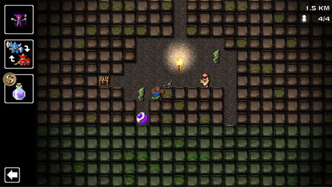 游戏目的就是消除3个以上相连的方块,召唤方块中的魔物去攻击左方的勇者。全部共有三人,分别是杂鱼、经验多or稀有(机率性)、BOSS