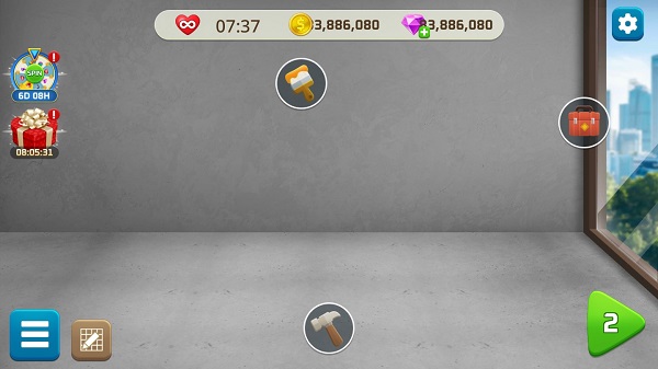 目前,游戏的玩法主要以三消闯关为主,在玩家装饰房间的过程中,需要用到相应的工具,为此通过消除匹配可以获得你所需要的工具,至于消除的规则很简单,以传统三消匹配为准则,类似的特殊消除方式可以获得道具助力作用。