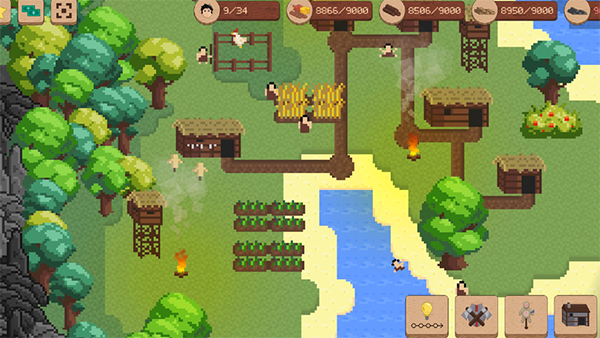 1,像素风格,融合模拟经营和策略战争,必须通过收集资源,扩大村庄规模,保护它免受不同时代的敌人攻击,推进文明。